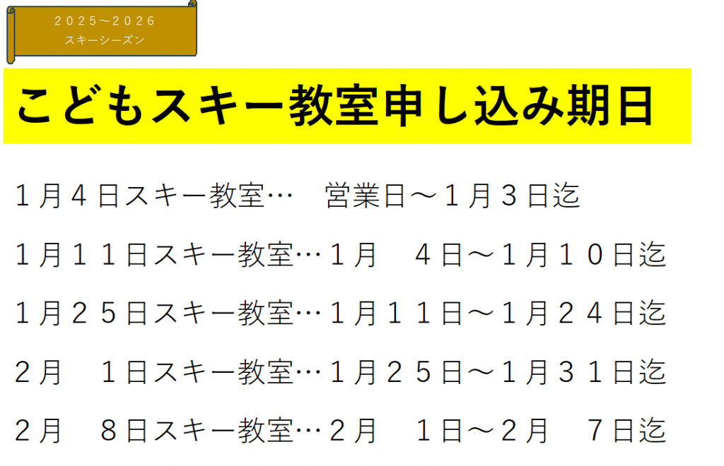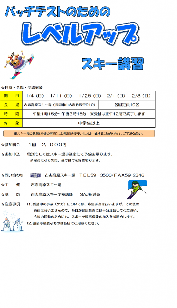 スキーハウス事務室で参加料を添えてお申し込みください。
